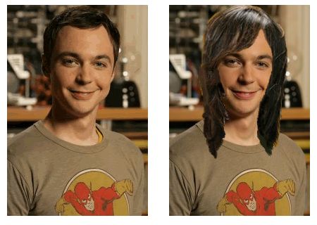 Here you go: Sheldon Cooper as he is and Sheldon Cooper with long hair. ;)