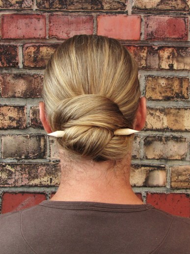 Hey I love the look of that pair of antler sticks in your hair:) The way I look at it is the hair sticks are functional in keeping the bun in place but they also add an adornment to your hair that's very attractive.That's why I chose the wooden sticks in that color as I think they are highlighted in my hair.I like the fact they stand out the way they do.Thanks for posting that bun with antlers rowie as I just love it!Cheers