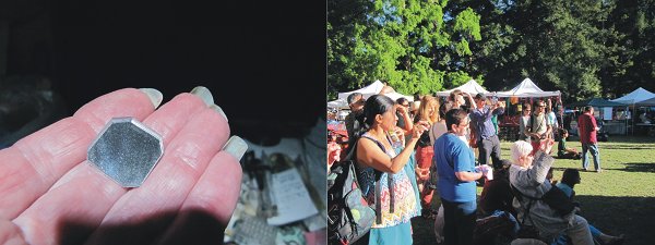 I had a very novel idea to hand out these little acrylic mirrors at the fair. I fabricate acrylic plastic for a hobby. I handed out about 20 of them. A clue, notice how dim the sunlight is in the image of the crowd. It was a cloud free day. 30 to 40 people got involved in this.
