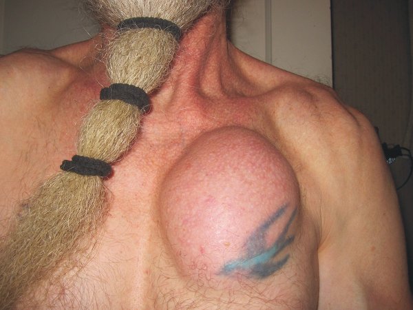 I'm sorry to hear about that and the fact it can't be removed is unfortunate especially if not having it there would make life easier for you.The one I have is at the surface, or it feels like it is, and is relatively small but noticeable.I'm not sure what's involved to remove it but as long as it doesn't grow really large I would just leave it.If it were as big as what Scott has on his chest I would definately have to do something about that.Thank you for your input my friend.Cheers