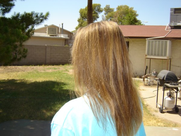 I have to say your hair looks fabulous and being it is why not let it grow out to a longer length:) Certainly can't hurt and it would be cool to see how waist length would look.You can always trim it back later on if you desire but I bet you won't once you get used to that length. Anyway great pic and thanks for sharing:) BTW, is that a swamp cooler on your house? I heard they are used in hot, dry climates.Cheers my friend.