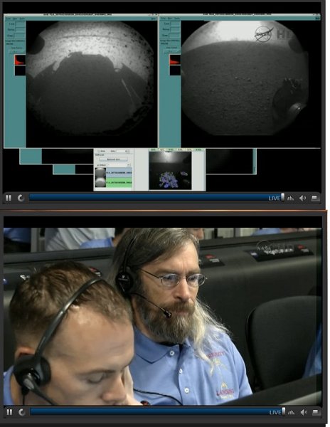 At 10:31 pm PDT (1:31 am EDT, 05:31 GMT) the "Curiosity" rover will land in the Gale Crater on Mars. You can watch the live feed from the control center at JPL on http://www.ustream.tv/nasajpl Hopefully the complicated landing procedure - where the SUV-sized rover will be lowered on the surface of the planet by a rocket-powered sky crane, after being slowed down from 13,000 mph to about 100 mph by aero-braking and a parachute - will be successful.