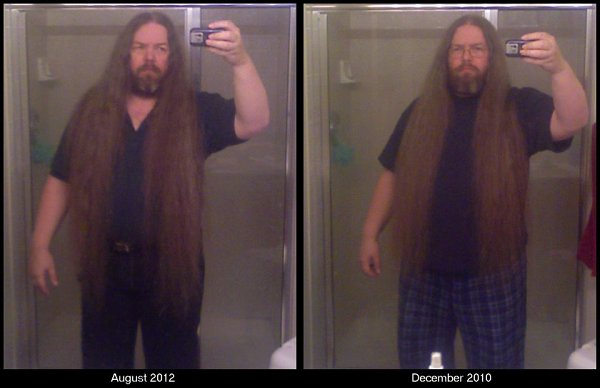 In the spirit of those updates, here's a minor update of my own. Did a composite of a couple of pics I shot with a mirror and a fairly crappy cellphone camera. Sorry for the lousy quality, but it does illustrate the shift in length over the last year-and-a-half.