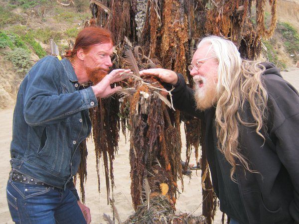 Meeting up with Bill & Larry on the cold, windy, fog-enshrouded shores of San Francisco's Baker Beach, Mark and I were introduced to this "interesting" beach sculpture: it was created out of a combination of driftwood, seaweed, Spanish moss, and various pieces of beach trash (beer bottles, orange peels, paper shreds, old clothes, you name it...)