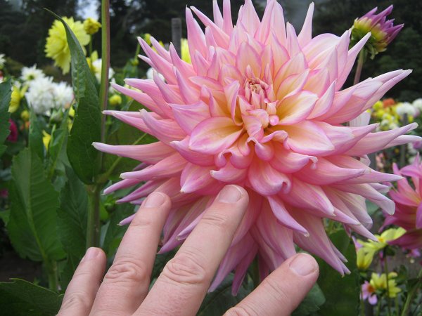 Not at all scary, but definitely impressive, were some of the HUGE Dahlia blooms in GG Park's Dahlia garden -- this photo actually doesn't do it justice (even though my hand in this pic helps to give perspective)...