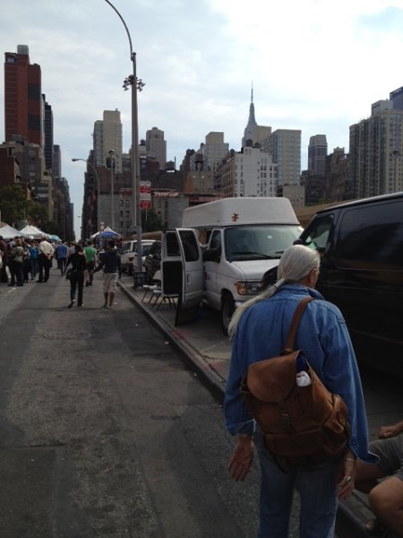 Well actually I see longhairs all over NY but this gentleman gave me the best opportunity to grab a shot of his ponytailed hair with a cool ponytailer:)Obviously this guy is up in age but still has great hair and I loved the color.This was taken in a section of NY known as Hells Kitchen where they were holding their weekly Flea Market.Some intertesting items were being sold as I enjoyed looking at the antiques.Cheers