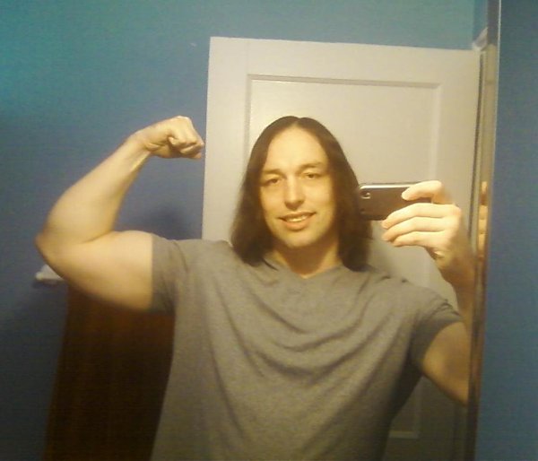 Wow: You have great looking arms(nice guns) as they say. You must put alot of work into your muscle routine. Are you a bodybuilder? I also like your long hair a great look for you and your muscles.