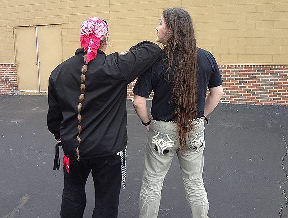 Went to the Witch's Ball in Detroit this weekend (a very hair-friendly place) and ran into another longhair at the table next to us. Told him about the board and got a picture with him.