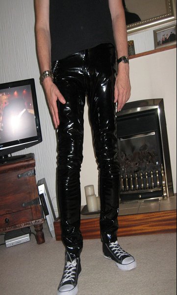 Wow, I like those jeans as they look cool all shiny like that!lol.I don't own any PVC jeans but was thinking of leather ones when I was in NYC a week or so ago.They had nice looking ones at the Diesel Store on 14th Street but the $600 price tag was a bit steep at the moment.When I was out in California last month I picked up a pair of Japrag skinny jeans in the Castro section of SF.I thought they were so cool looking and they fit like a glove but were very comfortable.Here is a pic of me wearing them during a hike I took with our own Scott!Cheers
