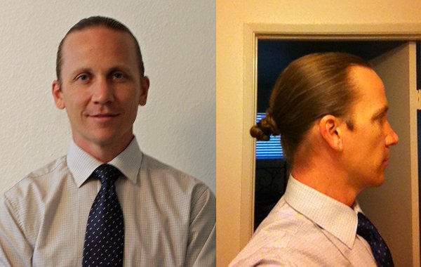 What company is it for? I know a guy out in the Bay Area who is a pharmacist for Kaiser and he has thick long hair that goes down to his lower back. He just ties it in a ponytail. I wish companies would just lay off the whole personal appearance thing and focus on skills instead.