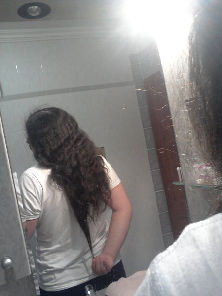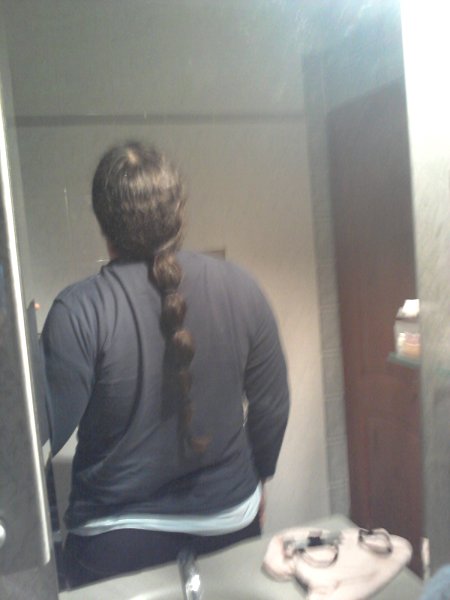 Wow you look like you are almost at hip length. It's so nice to get these surprises with hair stretching. I know that when I stretch my hair I can already reach mid back length. But I am kind of like you, with a long back. This was a fun shot. Thanks for sharing it.