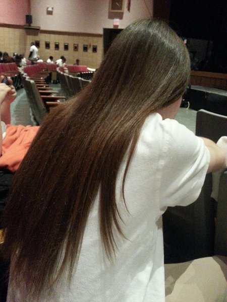 Beautiful hair and great length after four years of growing. Do you get flack from other guys in your school because of your hair, or are there a lot of other guys with long hair, too.