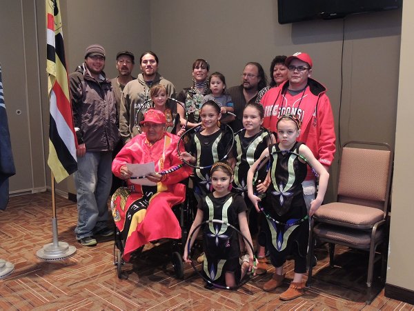 My daughter's Ojibwe dance troupe (pictured here, along with the drummers... my daughter is on the far right) performed a hoop dance in Mr. Nez's honor. It was a very powerful experience. It was especially touching to see the effect it had on some of the other old veterans in attendance, one of whom thanked them afterwards, with tears streaming down his face.