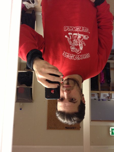 The way I usually take pics with my iPhone, it's always in the "natural" position of the phone, which means in portait mode without turning it upside down, using the lower res, inwards front camera.