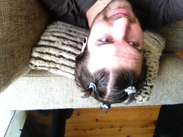 I like these funny pictures! The upside down posting makes them even more silly! Your hair is looking great and that is nice you can already do small ponytails. As you already know, it will only get better. Your beard and moustache also look great. You just look awesome all the way around! Keep up the good work! Great week to you and yours my friend!