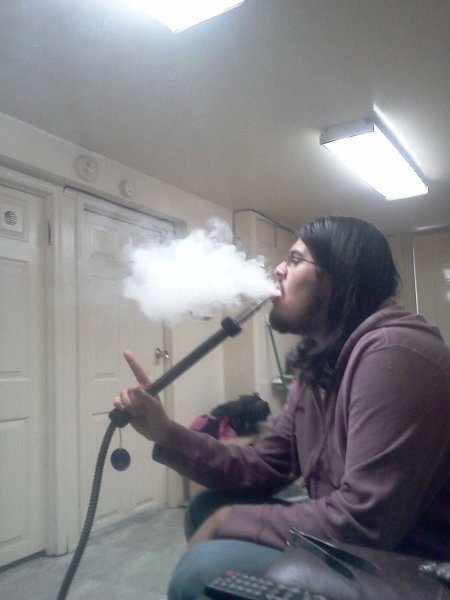 Hey there guys, my roommate took a pic of me smoking hookah today, I noticed how great my hair looks here, it's at 22 months growth and it's unwashed for 4 days (which IMO makes it look best, as it naturally tames my curls)
