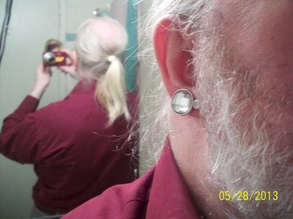 Yes I have to agree with Ted that some hoop earrings would look awesome!When you have longhair, like we all do here,you need something "big"to stand out more when it comes to ear wear.BTW, you hair pics look fantastic too!Cheers