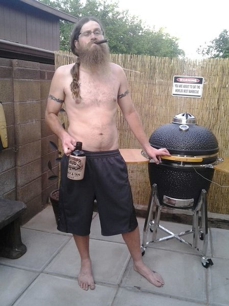 Thanks for the excellent update! Your hair is looking great and I love this pic. Looks like you're having a good time. You have everything going on there with the cigar, Mississippi mud and BBQ grill. Not sure I can wait until November! I will be anxiously awaiting your 4 year update! Please keep it growing and flowing! Great weekend to you my friend! Hmm, something about that sign makes me want to visit you on cookout days!
