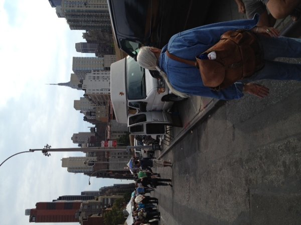 Yes, I do find it very cool when I come across older men who sport longhair at their advanced ages.I'm am slowly,or more likely quickly,approaching that exclusive fraternity.lol.I started growing my hair out for the very first time in my early 20s and it has remained long ever since!I knew back then that longhair was something I adored as it never was a fad for me unlike some.I realize circumstances in life force some guys to cut off their long manes so in that respect I feel very fortunate.I was in NYC at the Hell's Kitchen flea market one Saturday and spotted this gent with his magnificent mane.I managed to grab a picture of him to share with you all.Cheers and enjoy :)