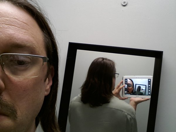 Samsung Galaxy Note 10.1, but point taken! I started to re-take it, but the mirror effect is pretty cool!
