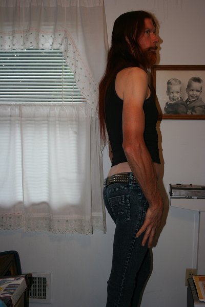 Here's a pic of me wearing the belt - but hung on my hips outside the jeans. That was nearly two years ago. Hair was shorter then!