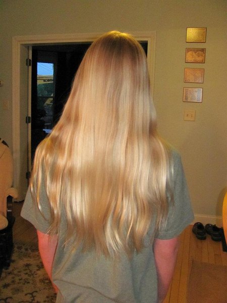 Your son's hair looks absolutely beautiful! You must be very proud of him.