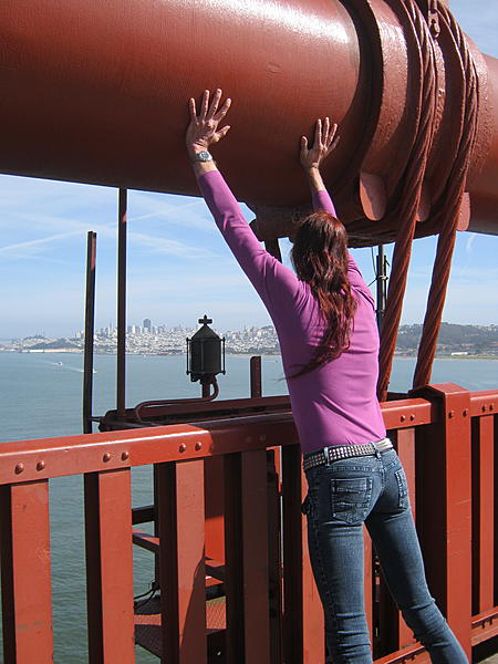 Hey guys, just a quick vacation/hair update pic as I returned to San Francisco on what was a much sunnier day than yesterday.Got to the middle of the bridge and felt it needed help from falling so I lent a hand or two:) LOL.Proves longhair does give super human strength:)Cheers