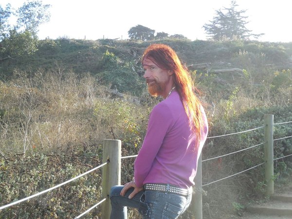 As the sun sank over the Pacific yesterday, in the headlands above the Golden Gate, we were bathed in light that we felt would beautifully highlight Mark's henna hair.