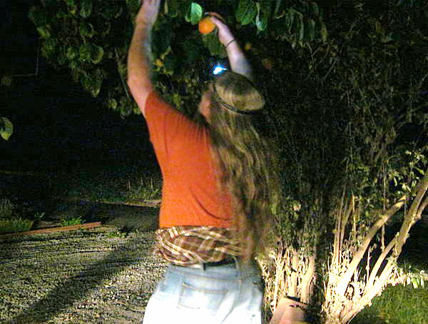 Wearing my headband with a flashlight attached, not even night time will stop me from picking yummy persimmons!