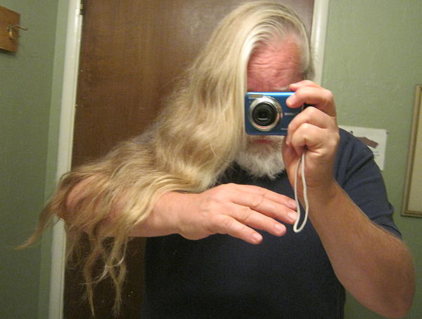 But I can tell you one thing. I would never refer to your hair as ridiculous! People pay good money to get hair like that. Thanks for the nice pic and keep it growing and flowing my friend!