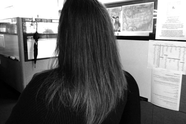 I took these here today, at work, after brushing out my hair and using a little bit of hair spray for depth. Using a product that gives a little extra body to my hair as it's very fine and straight, and can look too flat without. It seems to be a good product with no harmful chemicals (I hope). I won't mention it here because I'm not into product endorsements. If you email me privately I'll share the product name.
