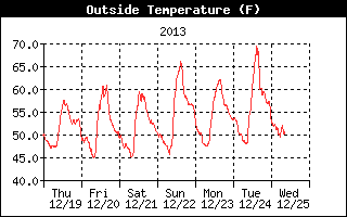 Our winters aren't very cold, either. Above is the temperature chart for my neighborhood for the past week. You could say we are having July weather right now! (And we don't have to buy a plane ticket to South America for the experience.)