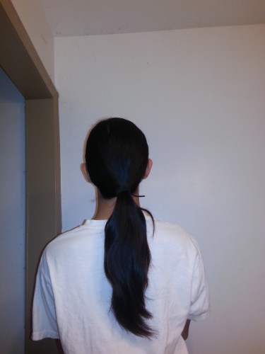 Wow that is such an awesome ponytail you have there. Exactly what I'm aiming for :) (I'm cursed with wavy brown hair though)