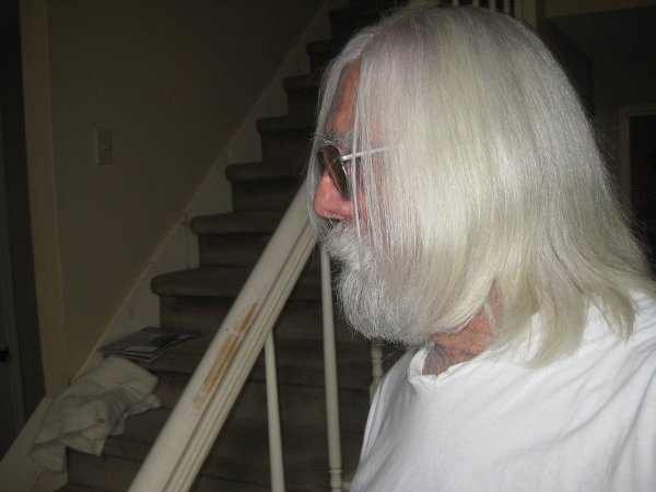 In reality, though, I don't ever trim either, and "my hair" is just one big mass. The picture above is several years old, but it was taken at the right angle to show how my mane and beard just run together. Of course, it's all whiter now.