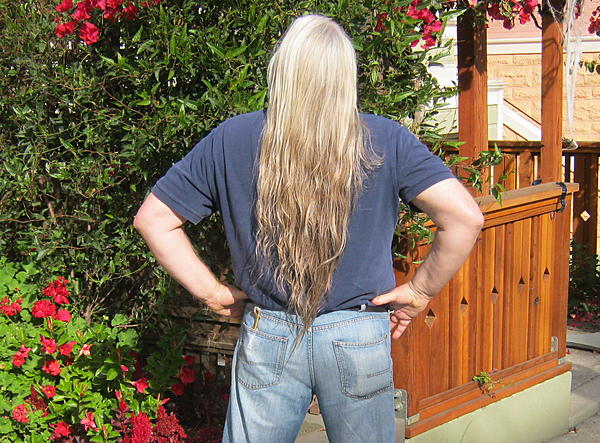 I'll try to get some more recent pics of my hair taken soon, even if they have to be "selfies" (LOL); but my hair hasn't changed much in several years. If you click on my avatar pic in the upper left hand corner, you can see a lot of hair pics that Bill took of me, back in 2004 (when we were working on my silly website). My hair is of course longer than that now; but actually, not by any significant amount -- in '04 it had not yet reached my belt (as it does currently), yet it was at least mid-back by then.