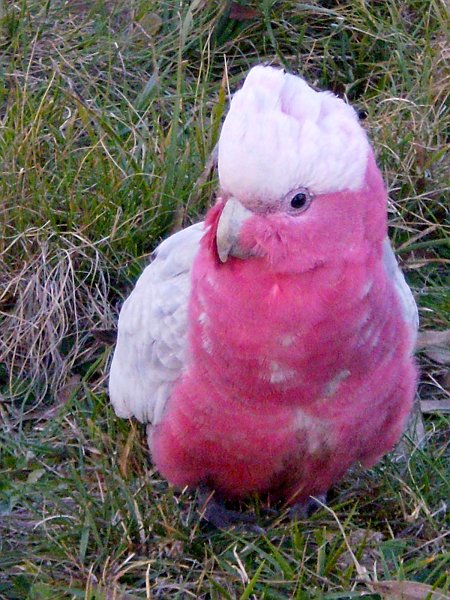 ... it's a male Galah + I think it wanted nesting material to line its nest !??! lol ... + & = oh & they live to 50 yrs. old too ...