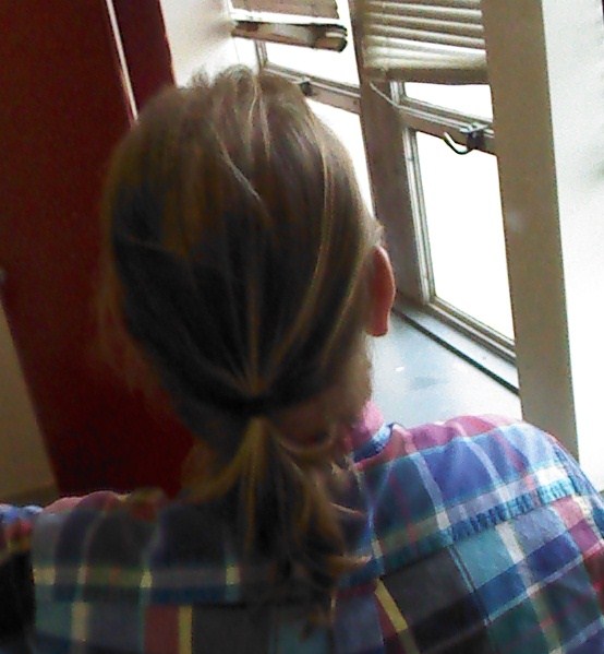 ... my pony tail has reached that line in my shirt... And just thought I'd share it with you guys - although, this is probably not the best picture, taken with my phone in a mirror in the bathroom at work... yes, at work... I am shameless.