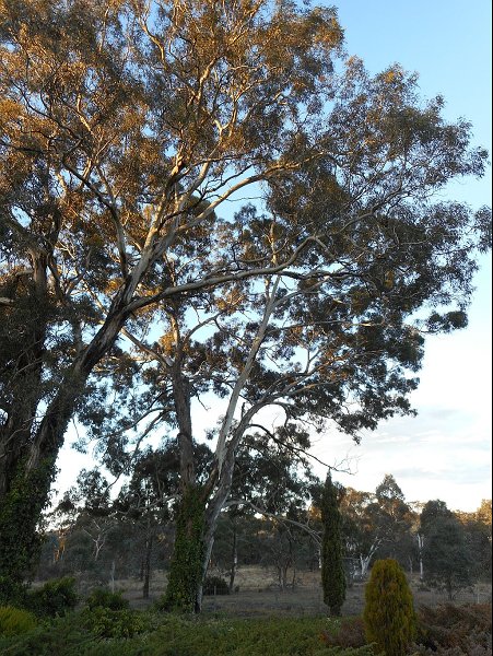 ... those two: ( 'Yellow Box' - 'Eucalyptus melliodora' ) are in my turning-circle in my house-paddock ) - my friend took the picture at dusk - he loved 'em so much ...