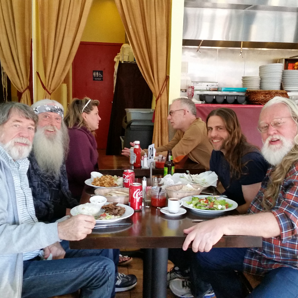 L-R: Larry (Bill's husband), Bill, (2 at adjacent table), Jason, and Ken.