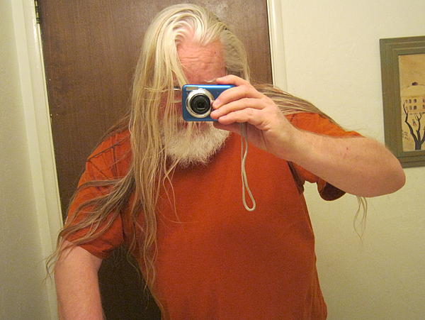 Probably the single most good advise tip that I've learned along the way during my long hair journey, that has helped me PREVENT split or damaged ends, is that of using beneficial hair oils. Kukui nut, Jojoba oil, pure Almond oil, and in this pic, even plain old "everyday" OLIVE OIL (yes, the same kind you use for cooking or put in your salad dressing) all are excellent oils for protecting the lower half of our manes (I never apply any oil into my scalp, as that gets plenty greasy enough on its own). I've also tried Coconut oil and Shea butter; but we each find our own preferences according to our liking and experience, mine being either Olive or Kukui nut oils (although I do confess to putting in a drop or 2 of pure Lavender oil into my olive or kukui nut bottles, because I like the "clean" fragrance of lavender).