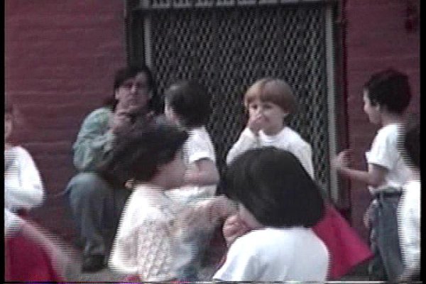 My father wore a mullet for most of the '90s. This photo is a still from a home movie shot in 1996. He is the guy in the denim jacket. I am curious as to how long his hair might have been if he stood up or was in a natural position like sitting, rather than crouched? What it might have looked like?