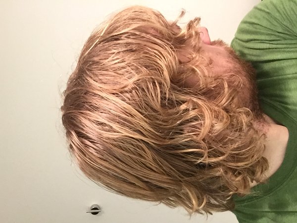 For a while I was wearing a bandana covering most of my hair, and then I switched to a beanie for a while. I feel like they're both soaking up too much oil from my hair – I frequently put them on while my hair is wet or at least still moist because it takes upwards of two hours or more to dry. And regardless of whether I have anything covering my hair, it seems to break on top (especially if parted down the middle) and in the front.