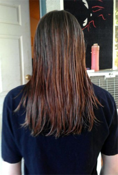 Here's a picture of it dry. Sorry it's in a ponytail, but that's how I usually wear it plus its super hot and I think I would die with it loose today. I was gonna take one with it down but the kink is real bad from the ponytail holder and I didn't like how it looked.