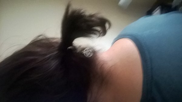 Hey, I'm posting a better picture than last, still an older one. You can see my very small pony-tail. (Sadly, the hair towards the front of my head isn't long enough, so I have to pin it back)