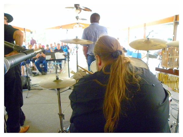Had an outside gig in a pavillion last Saturday, started out with my hair down but the heat & humidity was so bad I quickly put it in a pony for comfort.