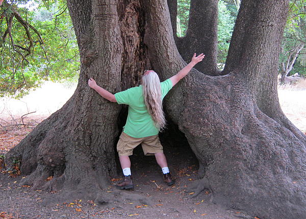 ... Same autumn day a few years ago; same park (Point Reyes National Seashore); along the same San Andreas Fault's "earthquake trail"... Too bad this guy in the green shirt must have never seen a big tree like this before, he's acting pretty strange around it...