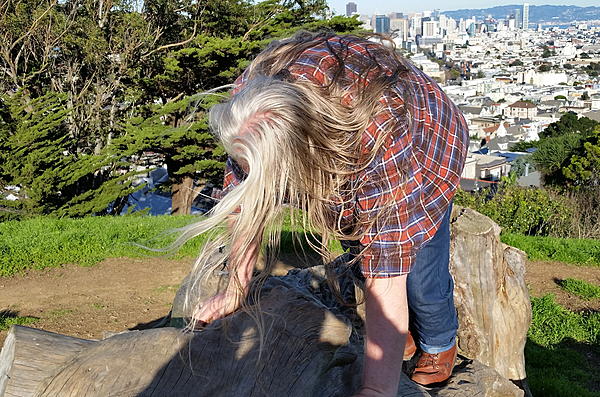 Here's another view of my length from behind, thanks again to Bill & Larry again for taking this pic (back in December or November of 2013, I think -- the previous pic with the GG Bridge in the background that was taken by Mark Hairball was from a year or 2 earlier... my hair length stays basically about the same in all of these pics, because I reached terminal length several years ago).