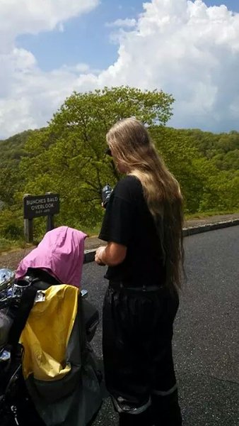 Am going to try to post a Pic from last summer when my wife and I took a smoke break while riding the Blue Ridge Parkway in western NC. I will get a better pic up soon (closer-up), when I get home off the road, I am a trucker.
