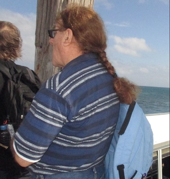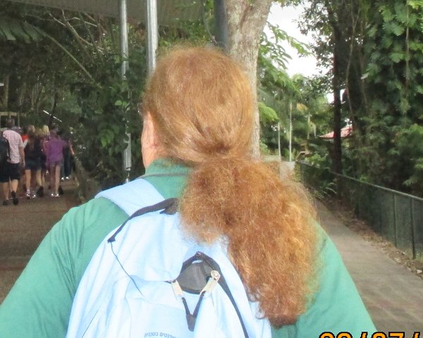 Hey, gang! Haven't posted an update photo in a while. Last week, my wife Clara nad I took a brief winter holiday in Cairns, in the north of Queensland. She took the photos I'll attached to this and several followup posts. As ou can see, one day I was wearing a plait and on one day a ponytail.