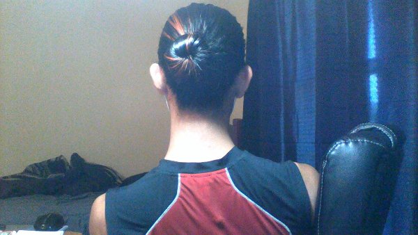 Had to learn how to make a not-messy bun with my hair for color guard (Debut show today!)